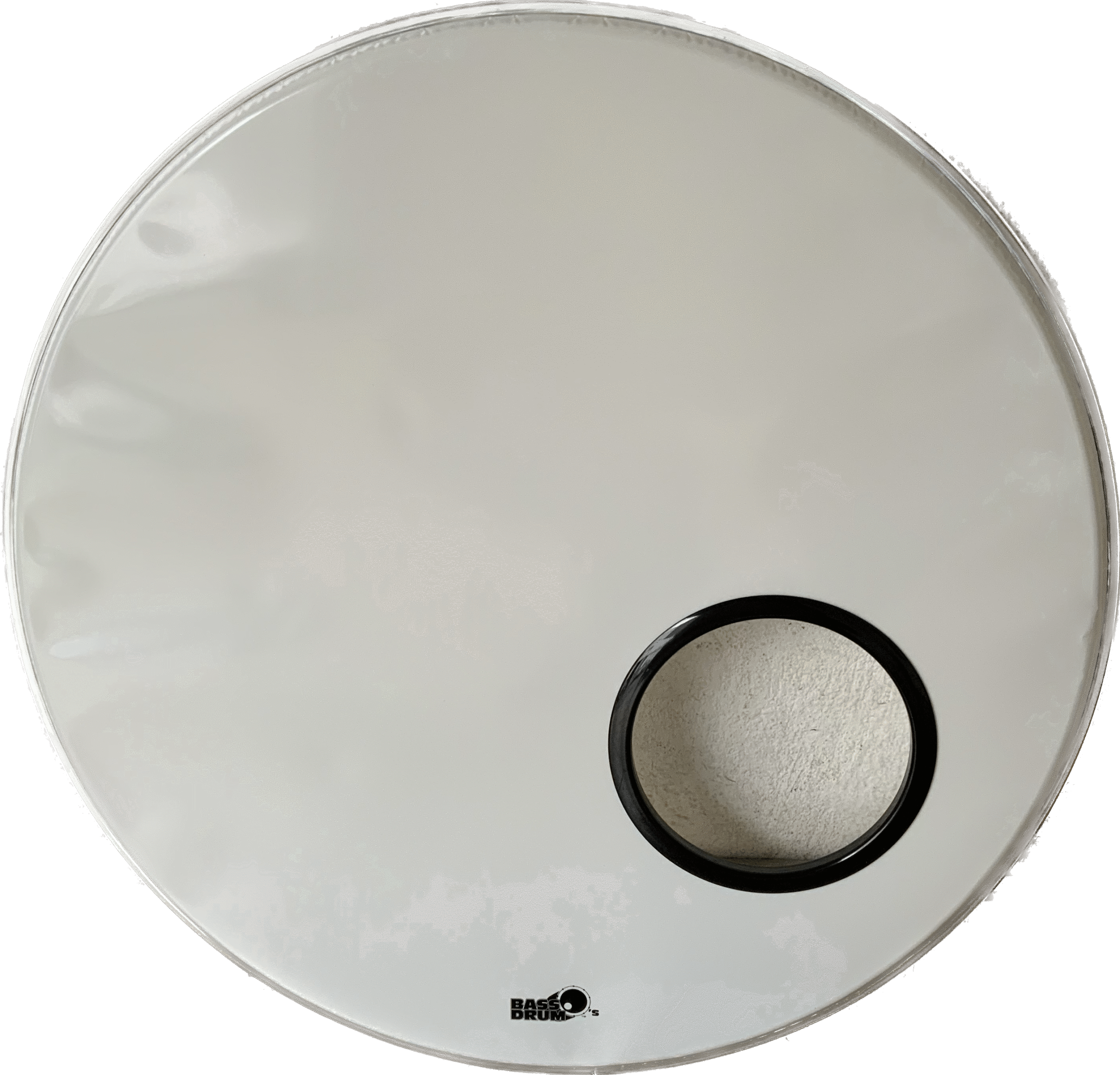 Bass Drum Head for 22″ bass drum in white with Black Bass drum O of 6 installed BB-2216B
