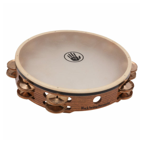 The Black Swamp 10-piece double-row tambourine with beryllium copper jingles has a beautiful ring color and is semi-jointed. Each jingle is hand-hammered and custom-tuned for a full and dynamically versatile sound. Each Black Swamp tambourine has a distinctive ring, allowing players to always have the right sound at their fingertips for any musical situation.