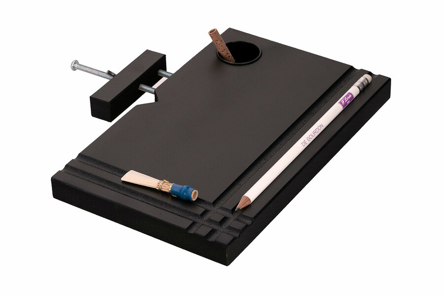 This 6″x 9″ shelf attaches to any type of stand. It contains a hole for a reed soaker (included) and grooves for a pencil and reeds.