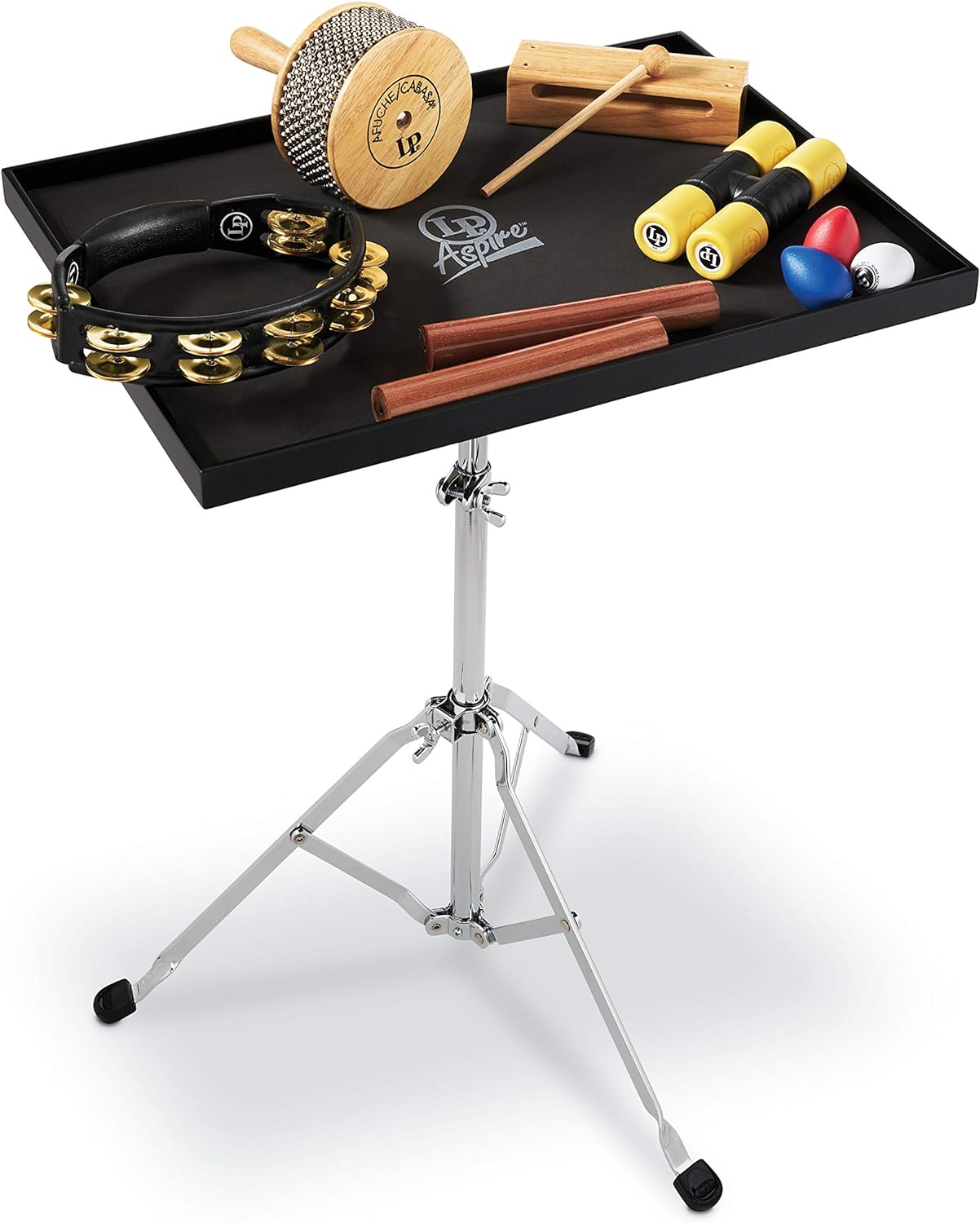 Includes a height-adjustable chrome stand.