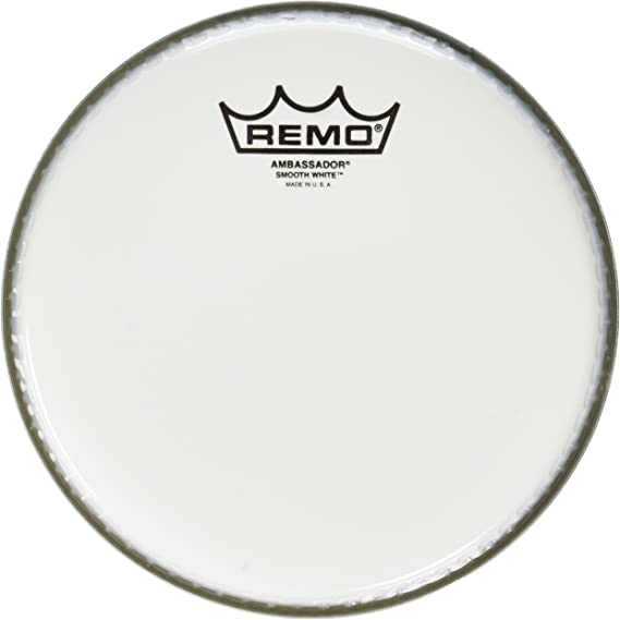 Remo drumheads have an 8-inch Ambassador drum head, plain white.