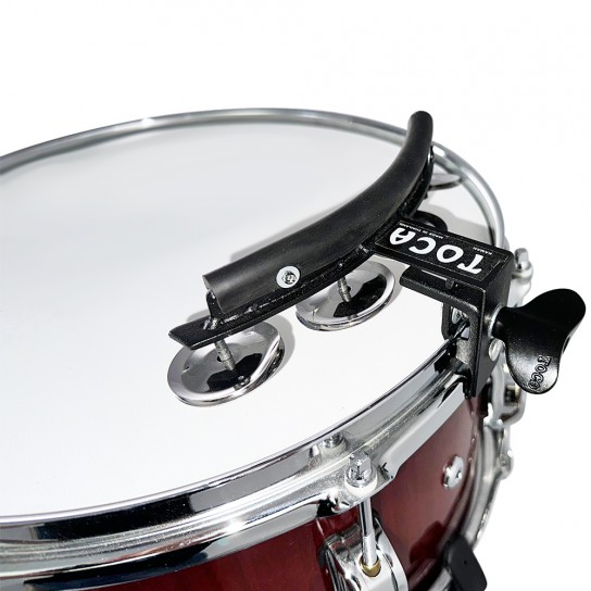 The Jingle Snap is an innovative accessory that adds a jingle sound to the drummer’s backbeat with precision and control. Keep that jingle close and play it when needed. This adhesive jingle provides a precise accent only when needed because it’s mounted directly on the snare drum instead of a constantly moving hi-hat. This small accessory has a large or quiet jingle. It fits any acoustic drum and features four nickel-plated steel jingles. The black powder-coated metal frame ensures durability and long-lasting use.