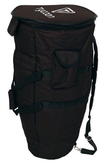 This heavy-duty nylon case offers excellent protection for your congas. It has an adjustable shoulder strap, a handle, and an exterior pocket. This small model is sized to fit most requintos (10″) and quintos (11″) on the market.