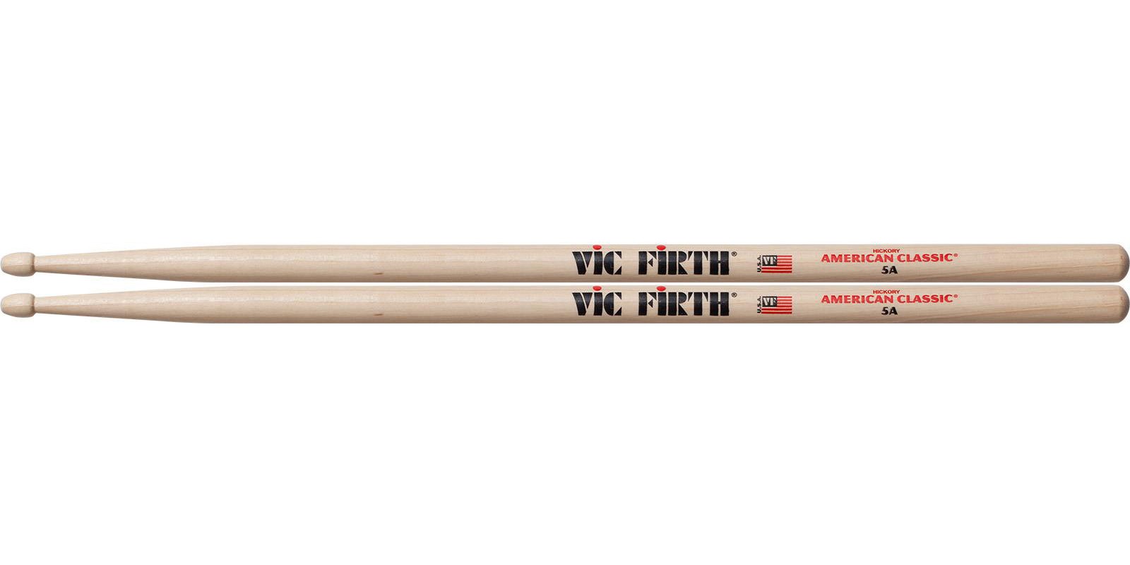 5A Drumsticks, American Classic Series, Wood Tip, Length: 16” inches, Diameter: 0.565” inches, Made in USA.